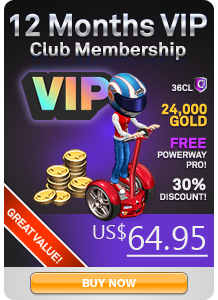 Si estás buscando la mejor manera de valor para ir VIP, no querrás pasarnos de nuestro paquete VIP de 1 Año. El descuento del 30% hace que este paquete sea una oferta fantástica – y para hacerlo aún más tentador, hemos reemplazado el Hot Rod Skateboard con un nuevo artículo Raro fantástico: ¡el Transportador Personal Powerway Pro!