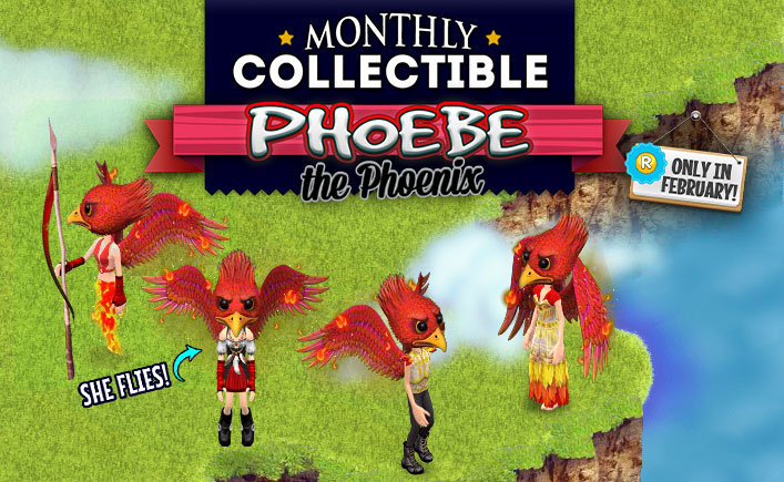 Phoebe the Phoenix is February’s Collectible. Come to Town Center now or check your catalog to transform into this impressive firebird. Our Rare collectible is only available until the end of this month.