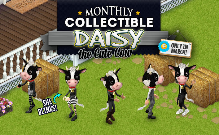 Daisy the Cute Cow is our Monthly Collectible. Try on Daisy in Town Center or pick her up from your catalog. She’s Rare and only available in March – so don’t miss out!