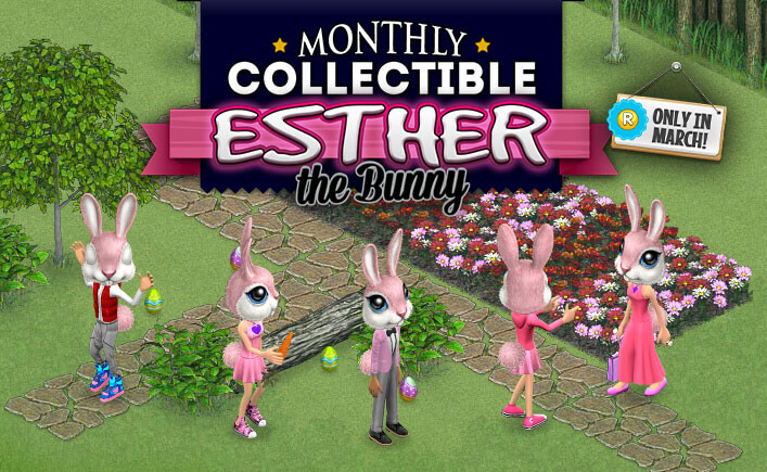 ¡Marzo de 2016 llega con ternura y primavera en SmallWorlds! Este mes, el Town Center y el catálogo nos presentan a Esther the Bunny, la conejita más adorable que parpadea, mueve su nariz y agita sus orejas. Perfecta para celebrar la temporada de Pascua con estilo, dulzura y una dosis de velocidad excepcional.