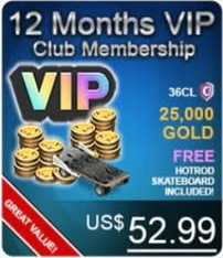 • Incluye: 25,000 Gold + Hotrod Skateboard + Beneficios VIP por 12 meses