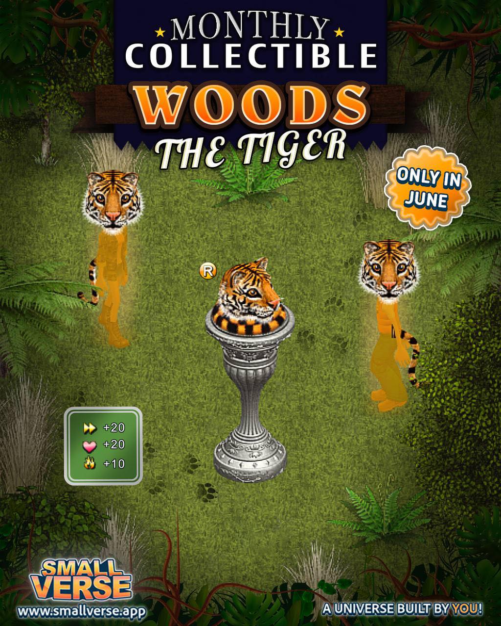 ¡Junio de 2025 llega con fuerza felina en SmallVerse! Este mes, el catálogo del juego nos presenta a Woods the Tiger, un majestuoso tigre de rayas imponentes que promete añadir un toque salvaje y elegante a tu avatar. Con solo 500 unidades disponibles en todo el mundo, este coleccionable es perfecto para quienes buscan destacar con actitud, poder y exclusividad.