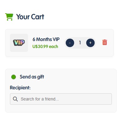 - Selecciona el item que deseas regalar (VIP, paquete o bundle).